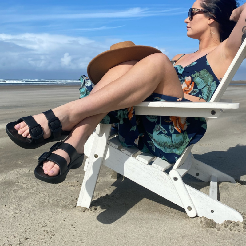 This beautifully designed sandal has an anatomically correct footbed and is offered in four colours. With a slight wedge and adjustable straps, it can be dressed up or dressed down. It is contoured to support the arches of your feet and has a deep heel cup with great medial arch and metatarsal support. This is an excellent sandal for people who love arch support and cushioning, yet want something a little dressier than a flip flop